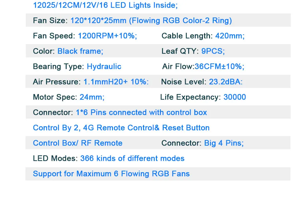 Tamanho do ventilador: 120*120*25mm (cor rgb fluida-2 anel)
