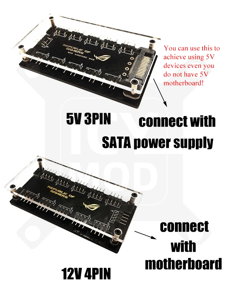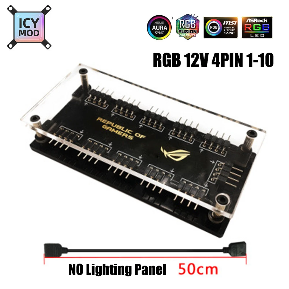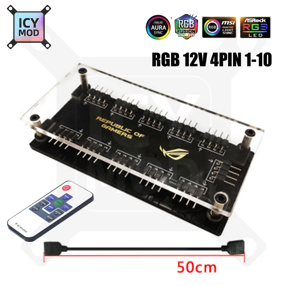 Rog rgb hub 1-10 1-6 divisor 5v 3pin sata fonte de alimentação painel de iluminação 12v 4pin convertor aura sincronização mobo refrigerador de água personalizado mod
