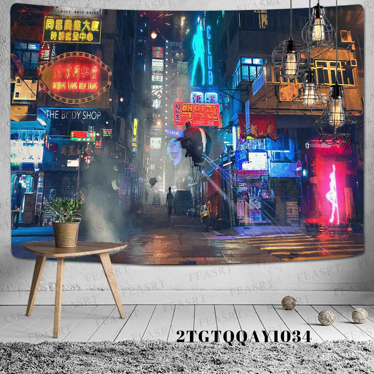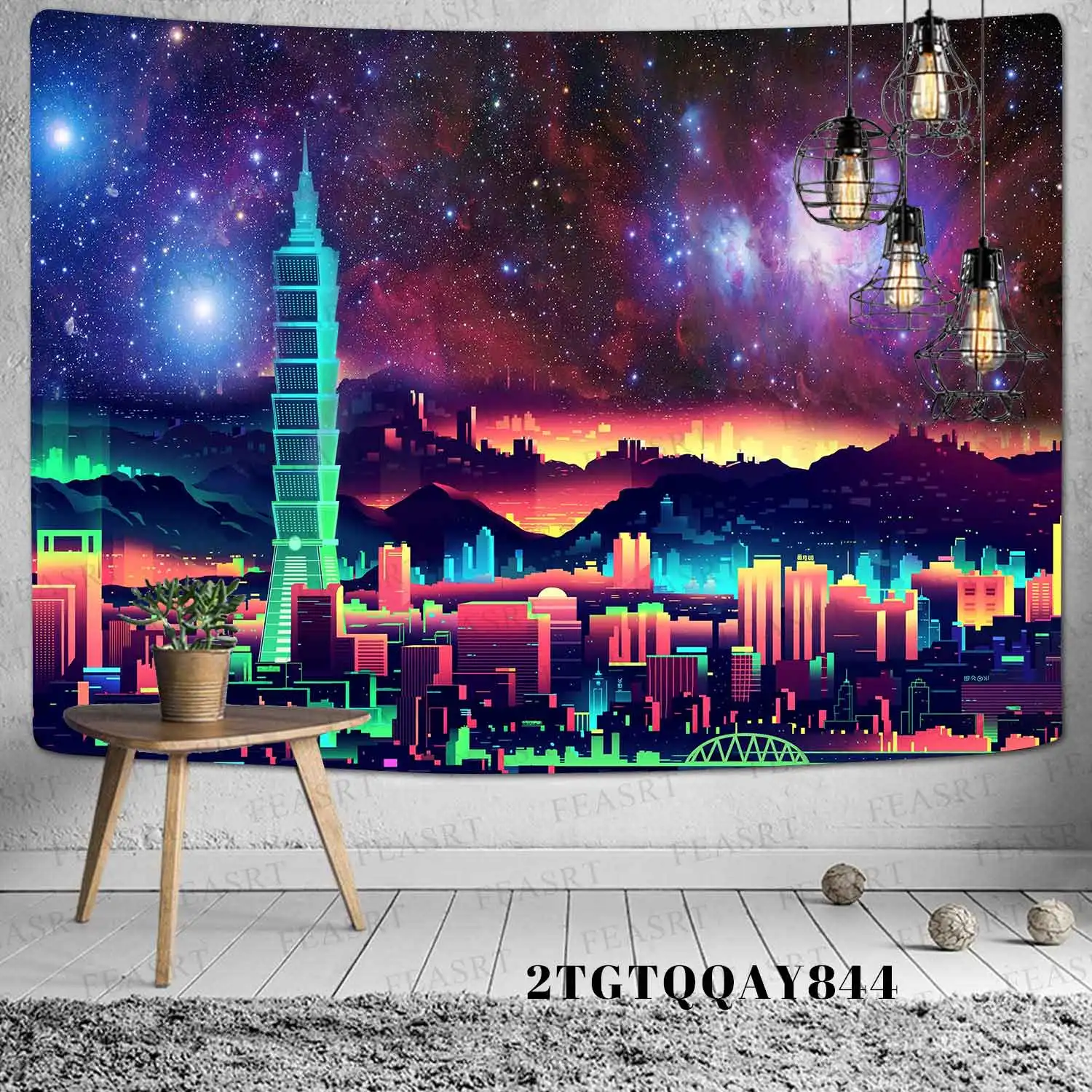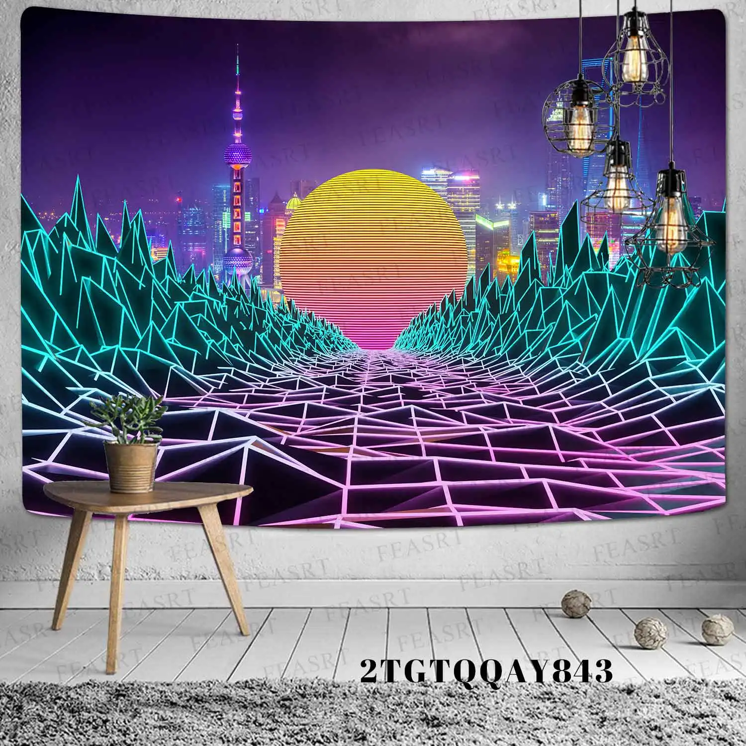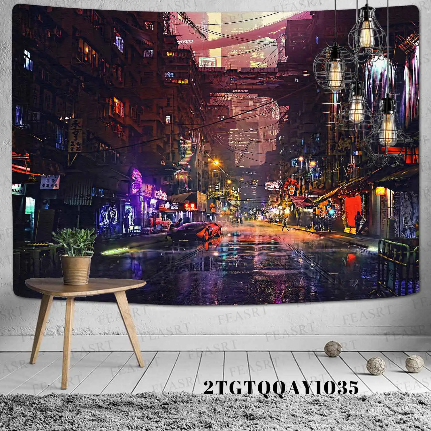 Siming tapeçaria de ciberespaço cibernético, tapeçaria punk psicodélico da cidade do futuro, tapeçaria de cidade neon