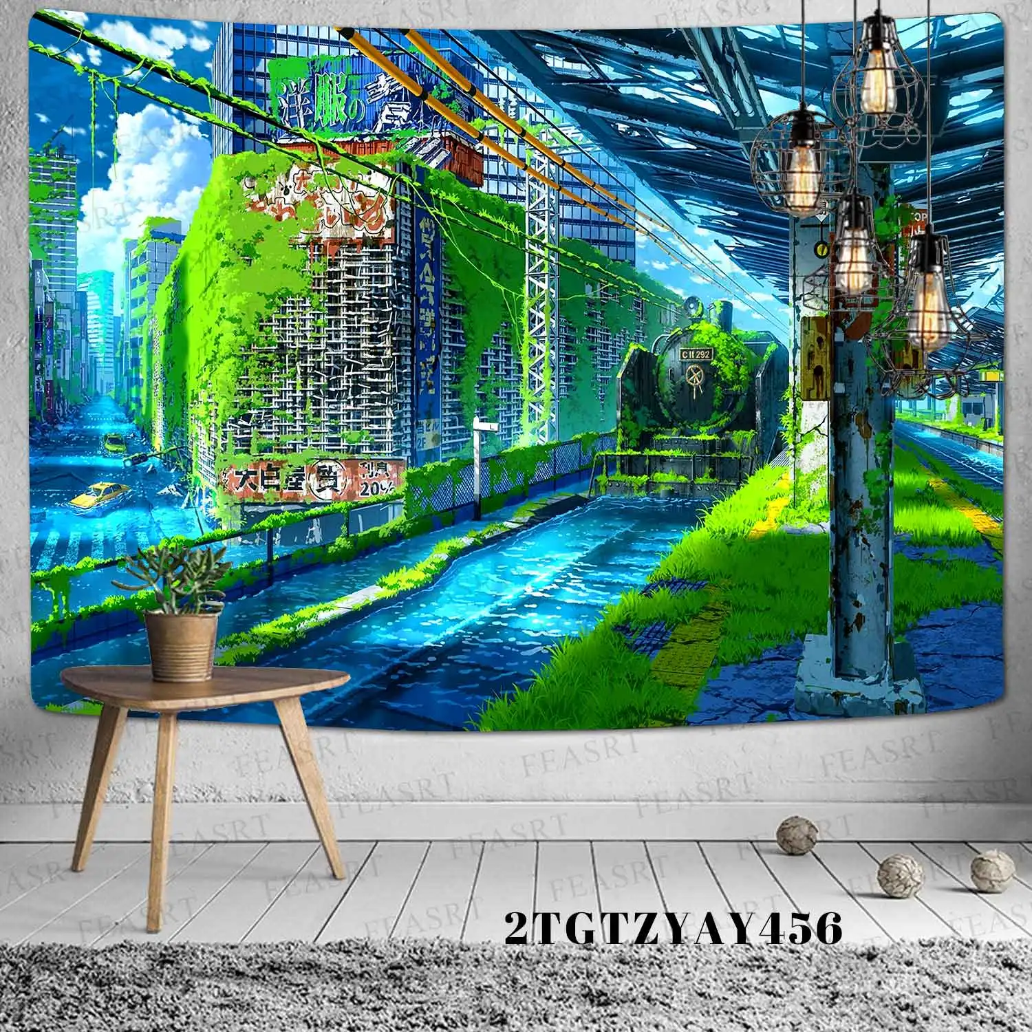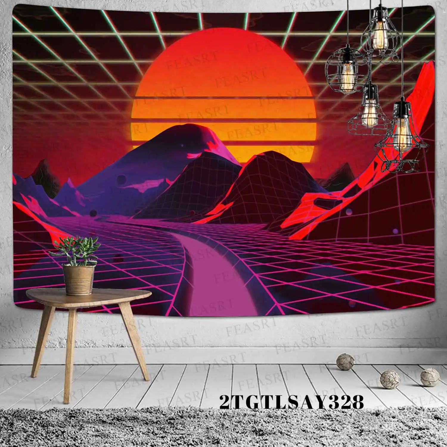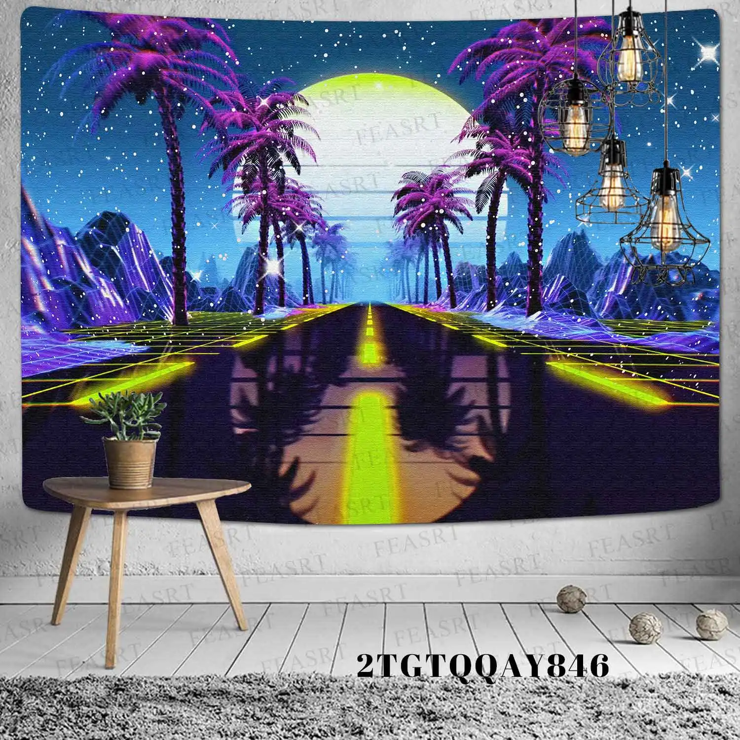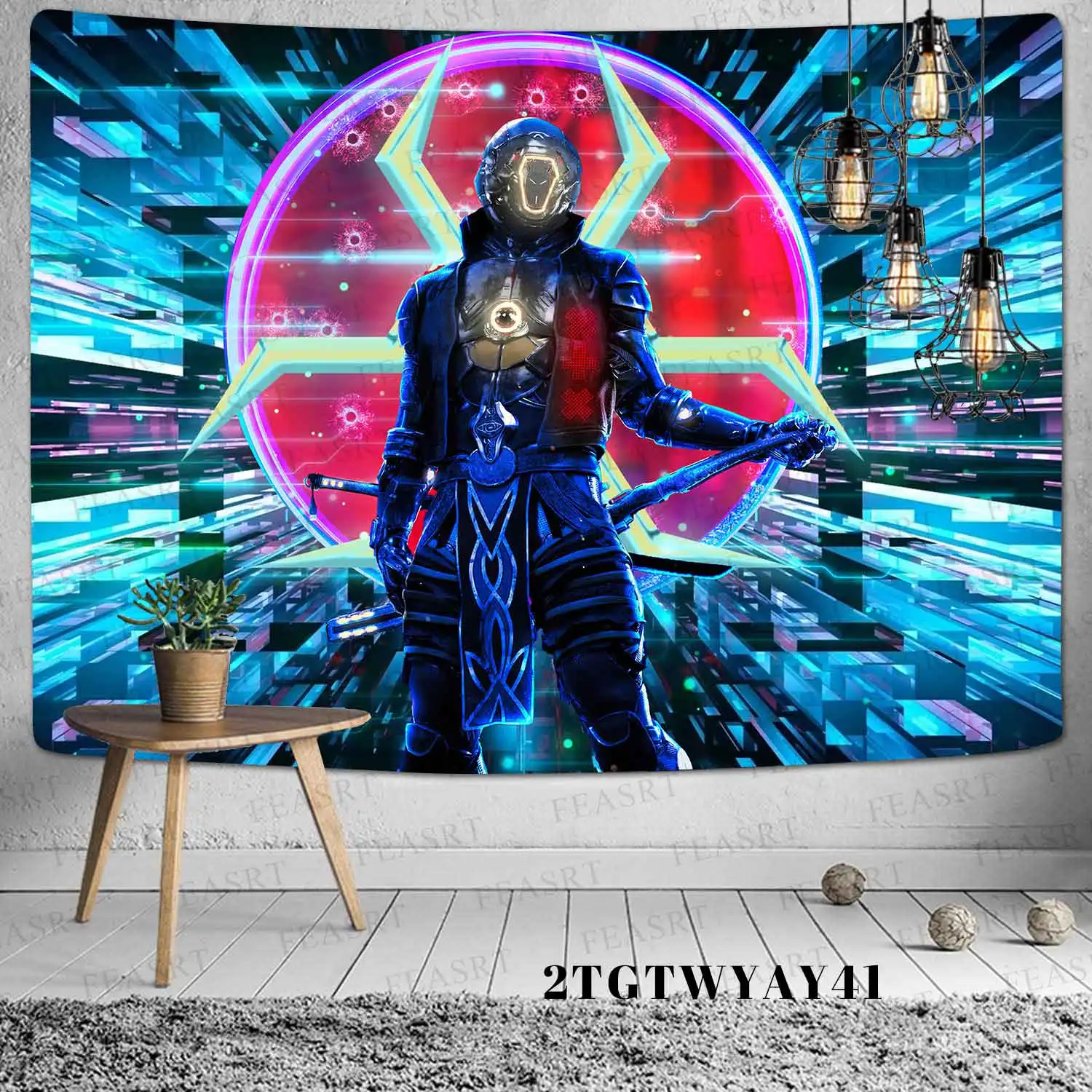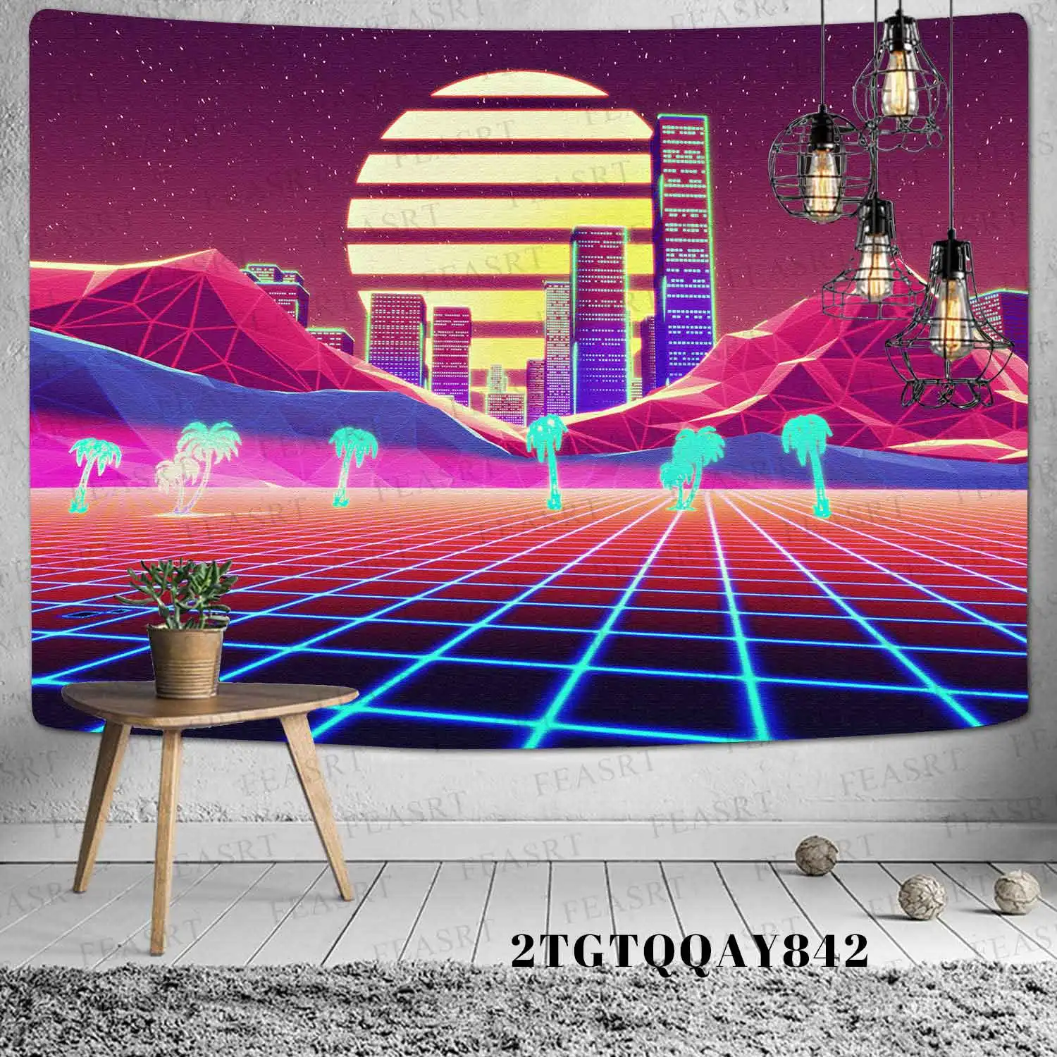 Siming tapeçaria de ciberespaço cibernético, tapeçaria punk psicodélico da cidade do futuro, tapeçaria de cidade neon