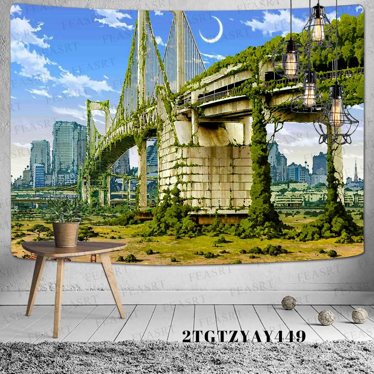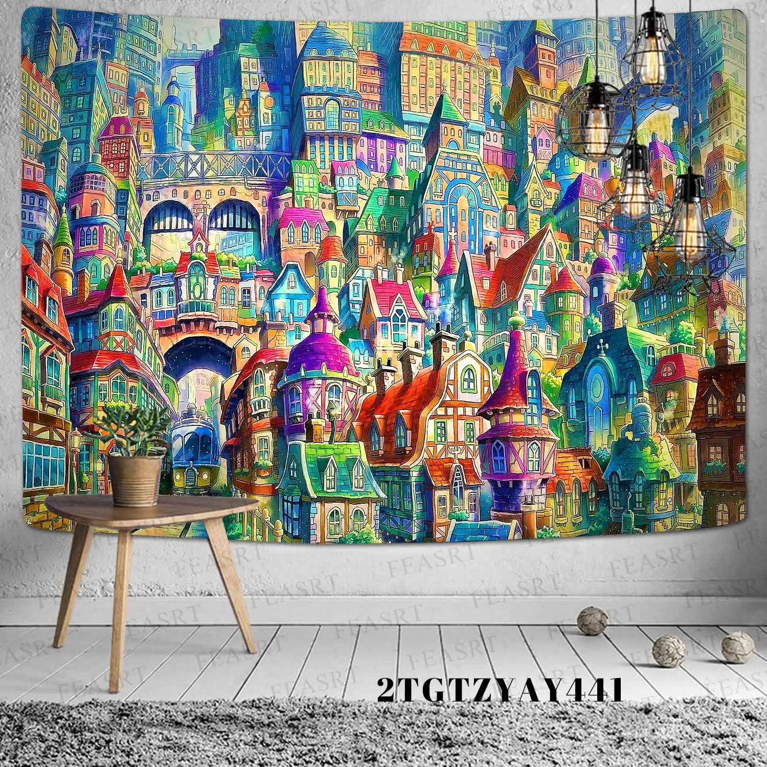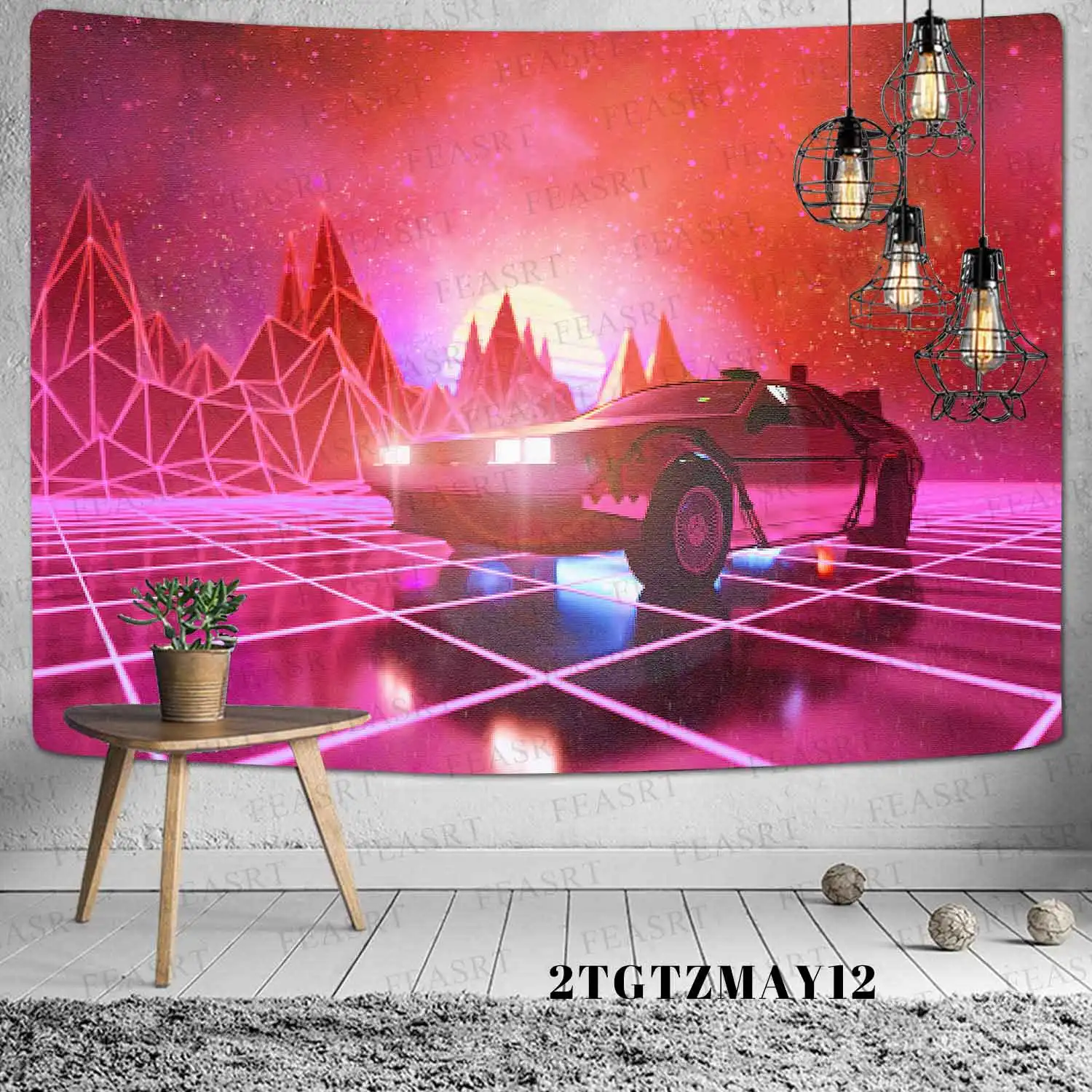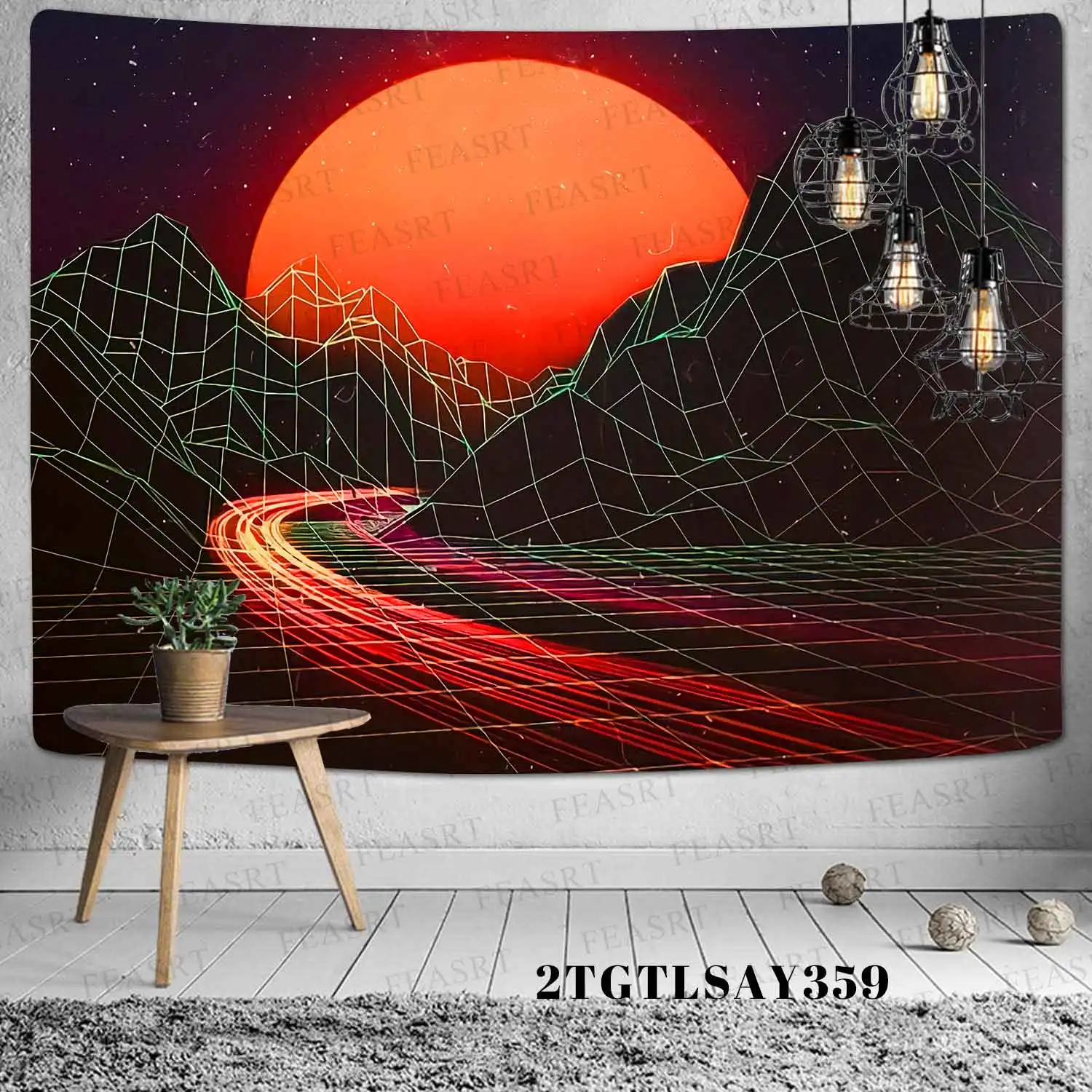 Siming tapeçaria de ciberespaço cibernético, tapeçaria punk psicodélico da cidade do futuro, tapeçaria de cidade neon
