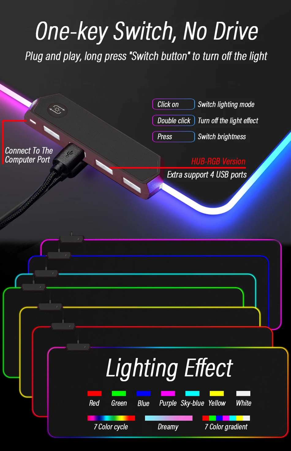 RGBMouse Pad OuHub (4 portas usb)RGB Mouse Pad