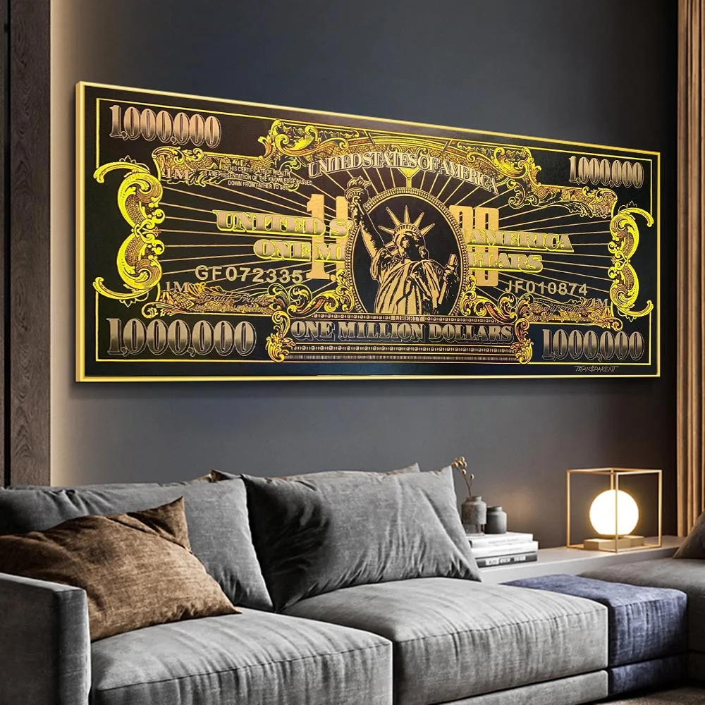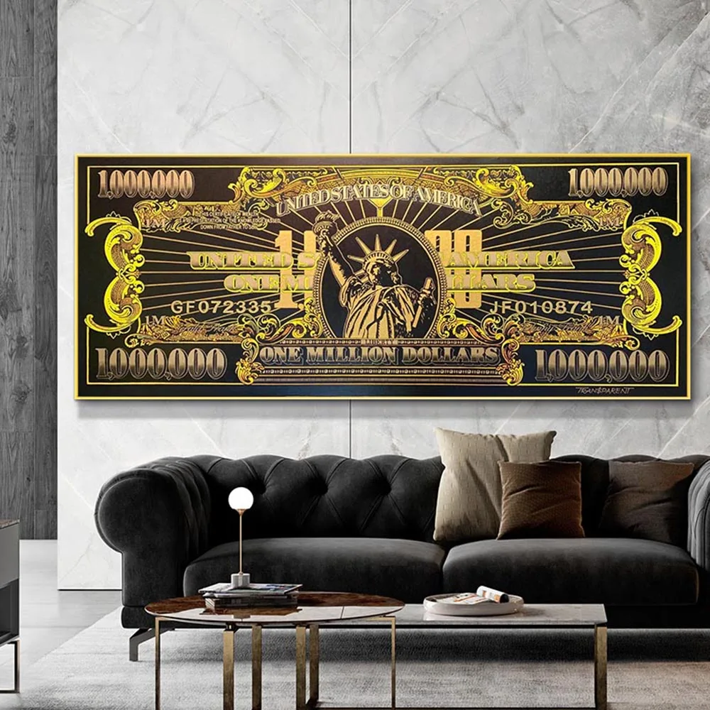 Um milhão de dólares arte moderna pintura em tela cartazes e impressões criativas 100 dólares imagem sala de estar decoração da parede pintura