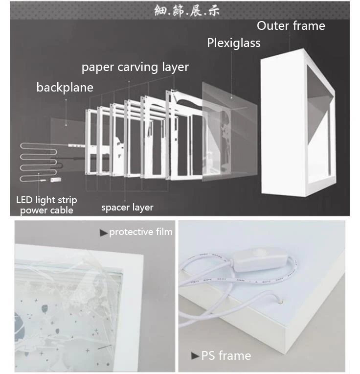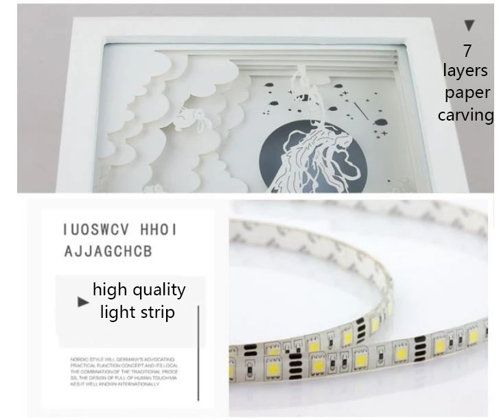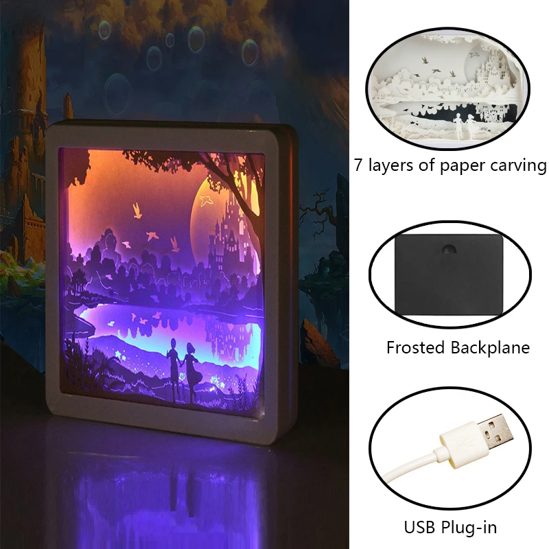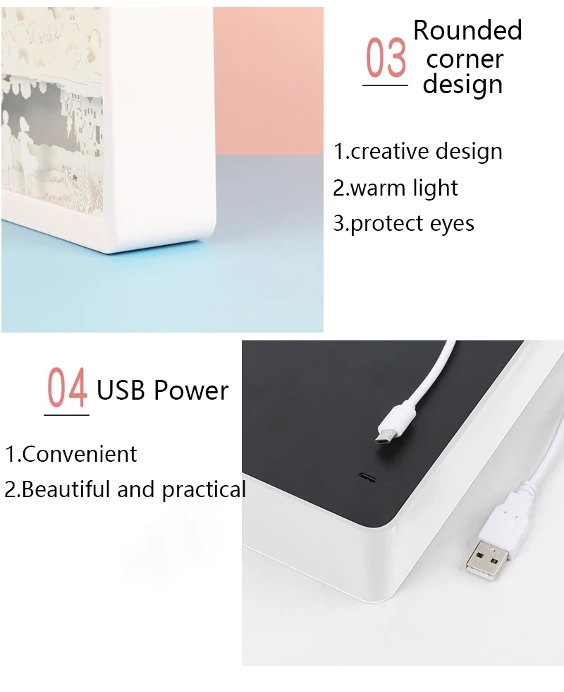 Usb operar 3d luz sombra escultura de papel lâmpada novidade iluminação prese