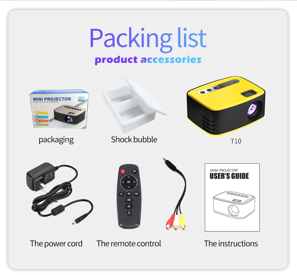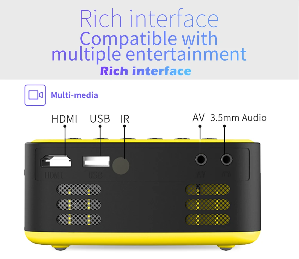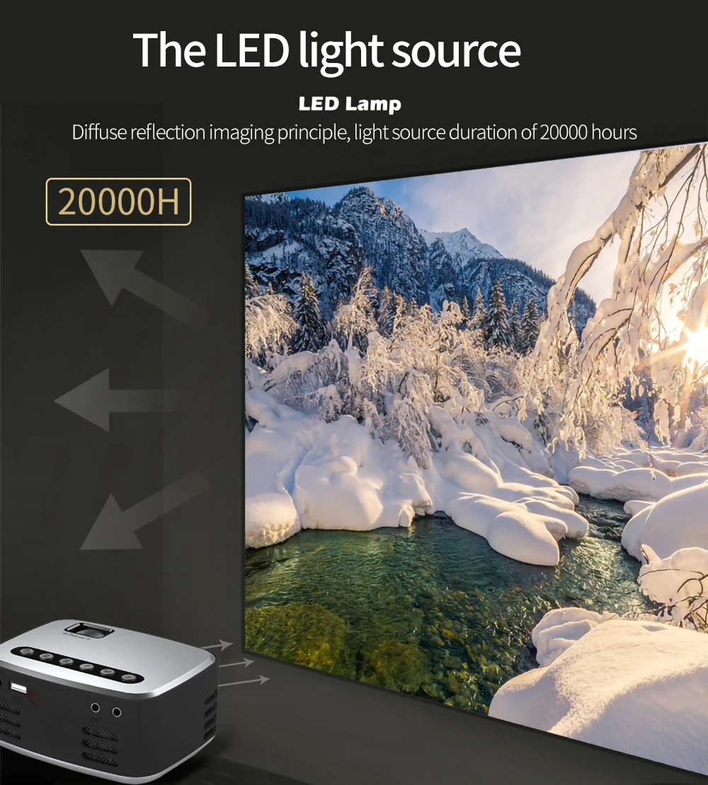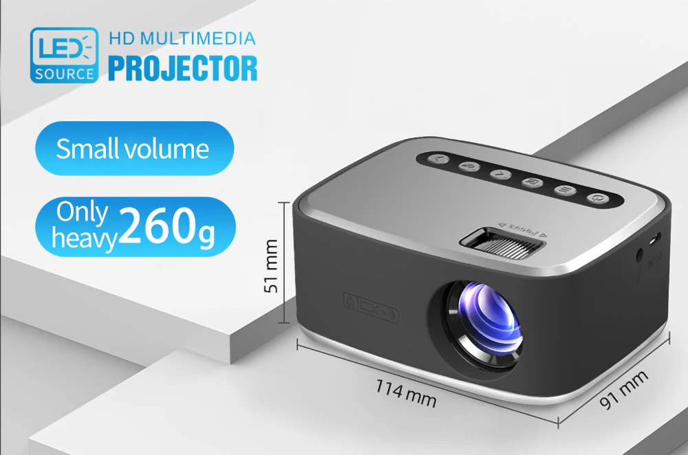 Veidadz t20-mini projetor portátil de 1080p, fácil de transportar, usb, hd, led, mídia, reprodutor de vídeo, cinema, miniatura, 320x240 pixels